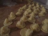 Ziemniaki obrać i ugotować w osolonej wodzie.Cebule obrać, posiekać i zeszklić na maśle. Połączyć z zmielonym twarogiem i przetartymi ziemniakami. Doprawić do smaku solą i pieprzem.Z mąki, jajek i wody zagnieść ciasto, wyrabiać je przez ok. 5 minut. Następnie cienko rozwałkować, dużą szklanką wycinać kółka. Na każde z nich nakładać po łyżeczce farszu i dokładnie sklejać. Gotować w dużej ilości osolonego wrzątku z odrobiną oleju do momentu aż wypłyną na wierzch. Najlepiej smakują jak zrobi je mama :-)