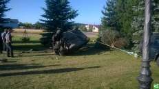 Pojazd marki Audi zjechał z jezdni i uderzył w ogrodzenie, powalił drzewo i dachował. Kierujący pojazdem został przetransportowany do Szpitala Specjalistycznego w Jaśle. Na miejsce zdarzenia pracowały dwa zastępy straży pożarnej: PPSP Jasło oraz OSP z Dębowca. Strażacy zabezpieczyli miejsce zdarzenia.